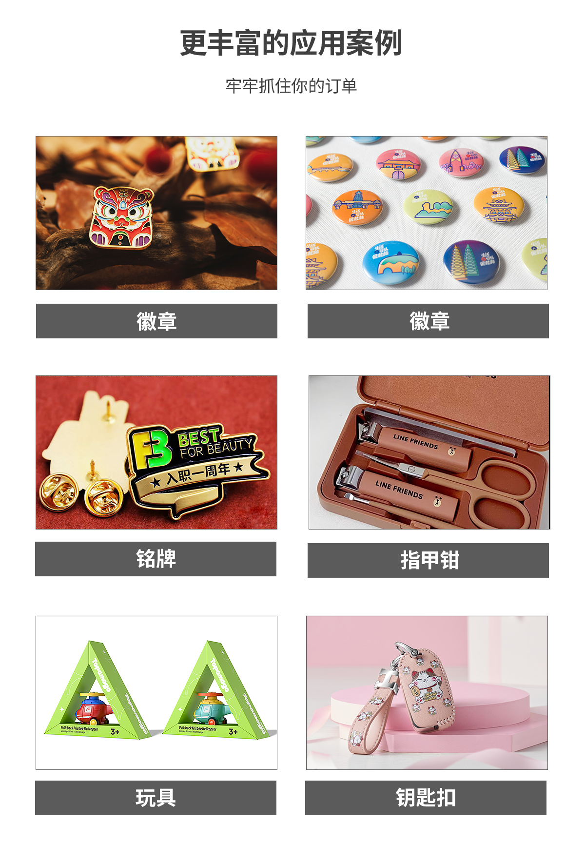 產品描述:鼎力數碼視覺定位uv打印機不需要打印產品定位框,各種異形材料隨意擺放到平臺自動識別可以精準打印產品。