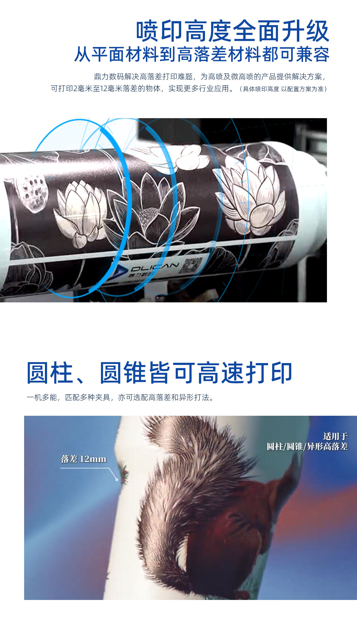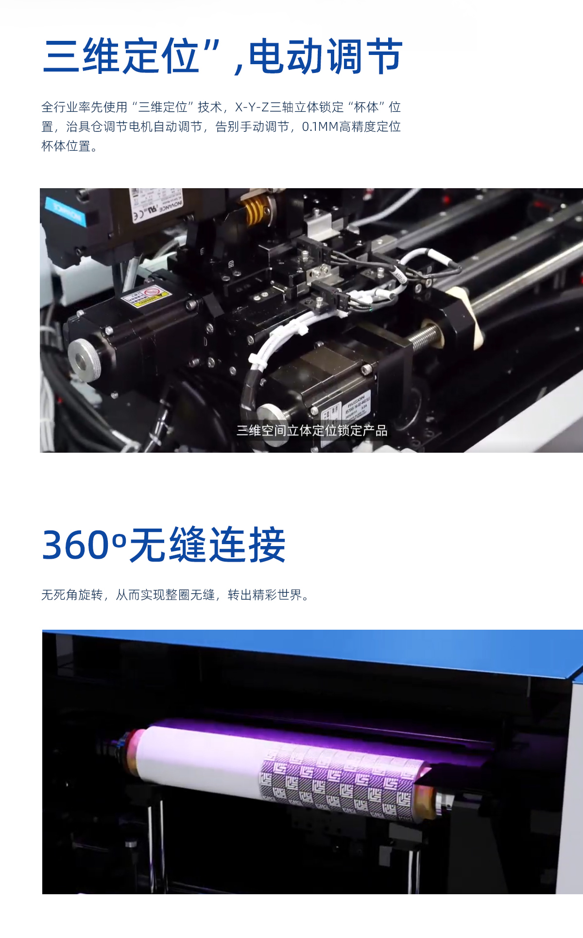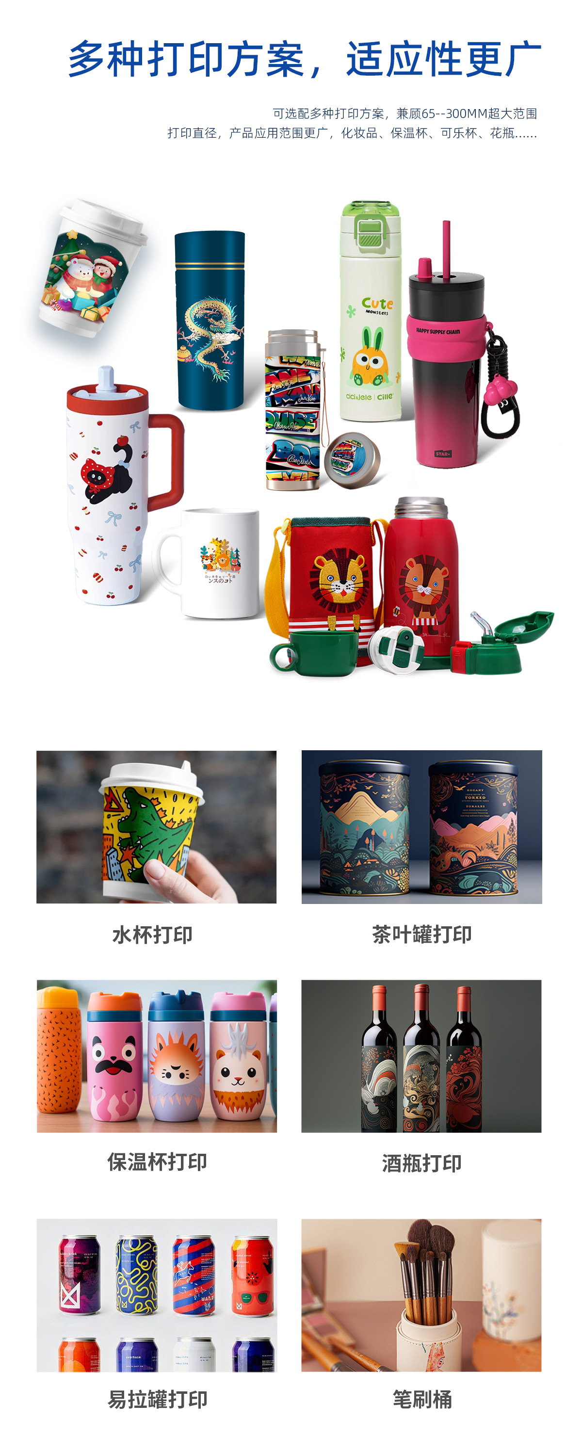 產品描述:鼎力360螺旋圓柱打印機,360°無縫銜接,可在圓柱體表面打印圖案,廣泛應用圓柱體,酒瓶,保溫杯,金屬圓管等產品